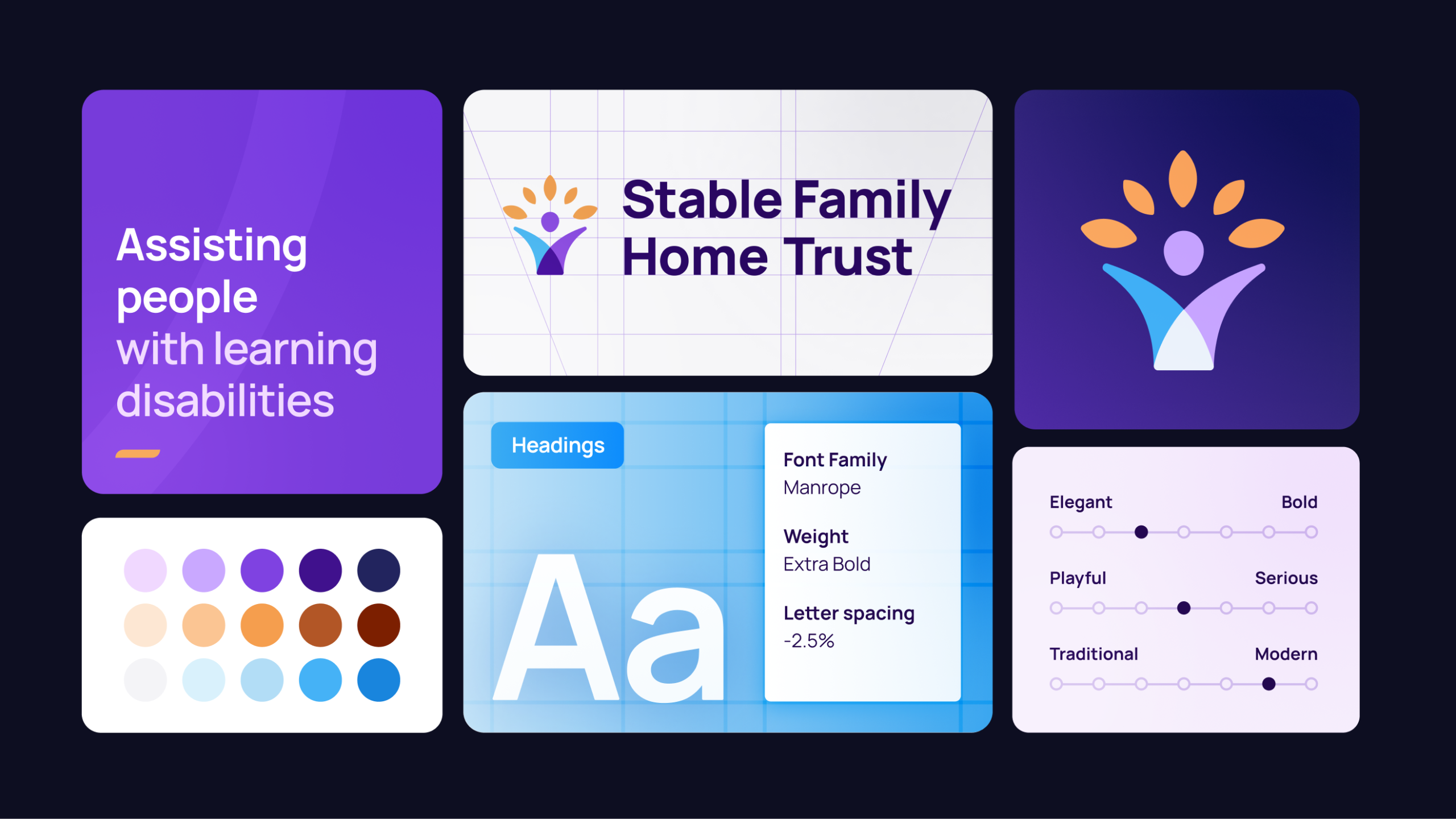 The refreshed brand gives the Stable Family Home Trust a clear, confident and accessible identity that truly reflects who they are. It is: